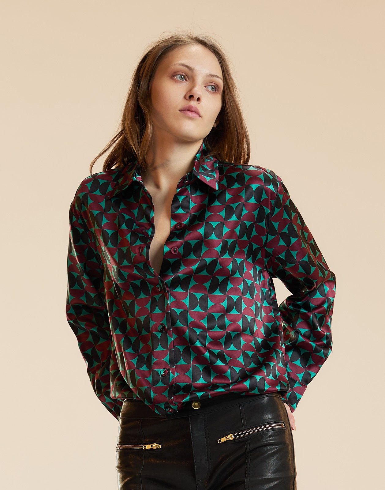 Our best-selling blouse. Your daily rider, now in a burgundy print.